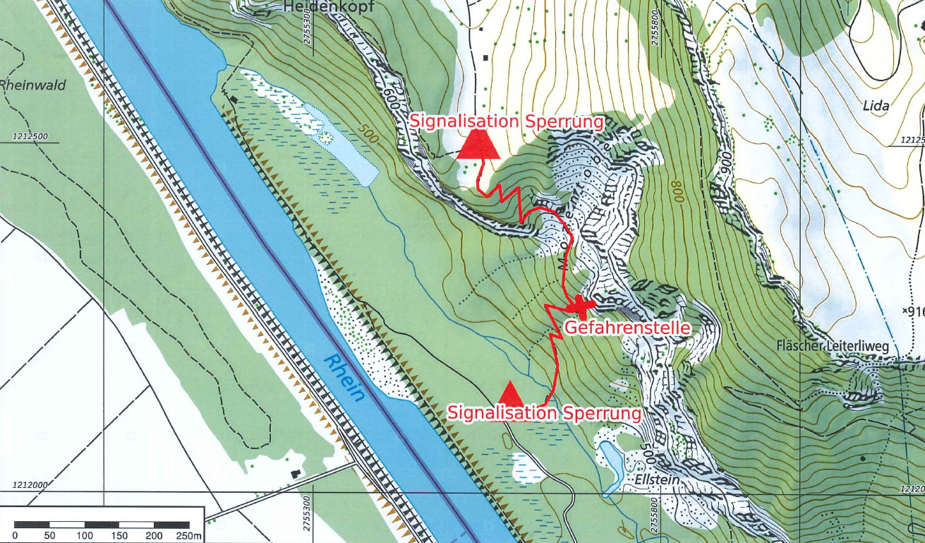 Karte Sperrung Wanderweg Mozentobel